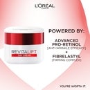![Image 1 - A white and red jar of LOréal Revitalift Day Cream is displayed on a white background with abstract red lines, featuring the text LORÉAL PARIS REVITALIFT DAY CREAM FIRST VISIBLE RESULTS IN 7 DAYS [ANTI-WRINKLE + FIRMING ACTION] YOURE WORTH IT. Image 2 - A white jar of LOréal Revitalift Day Cream is displayed with text reading LORÉAL PARIS, POWERED BY: ADVANCED PRO-RETINOL [ANTI-WRINKLE EFFICACY] + FIBRELASTYL [FIRMING COMPLEX], and YOURE WORTH IT. Image 3 - A white and red jar of LOréal Revitalift Day Cream is shown with text LOréal Paris, REVITALIFT DAY CREAM, POWERED BY: ADVANCED PRO-RETINOL [ANTI-WRINKLE EFFICACY] + FIBRELASTYL [FIRMING COMPLEX], YOURE WORTH IT. Image 4 - A smiling woman holds a jar of white and red LOréal Revitalift Day Cream, with text overlay LOréal Paris, REDUCE APPEARANCE OF WRINKLES, FOREHEAD -26%, NASOLABIAL -13%, CROWS FEET -13%, and on the product jar, REVITALIFT DAY CREAM. Image 5 - A white jar with a red band and lid for LOréal Revitalift Day Cream is centered on a white textured background, with text reading LORÉAL PARIS REVITALIFT DAY CREAM VELVETY SMOOTH TEXTURE NON-OILY • NON-STICKY • NON-GREASY YOURE WORTH IT. Image 6 - An image displays four LOréal Paris Revitalift skincare products on white pedestals, including a red serum bottle with a dropper, a day cream jar, a night cream jar, and an eye cream jar, with the visible text LOréal Paris YOUR ANTI-WRINKLE + FIRMING ROUTINE HYDRATING DAY CREAM Revitalift Day Cream HYDRATING NIGHT CREAM Revitalift Night Cream FAST ACTING SERUM LOréal Paris Revitalift HYDRATING EYE CREAM Revitalift Eye Cream.](https://s1.thcdn.com/design-assets/products/10528812/10528812/10528812-UK.webp)