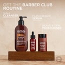 ![Image 10 - Three brown LOréal Men Expert Barber Club grooming products, a large 3-in-1 cleanser pump bottle, a small flash repair serum dropper bottle, and a beard and skin moisturizer jar, are arranged on a wooden block, with visible text reading GET THE BARBER CLUB ROUTINE, 3-IN-1 CLEANSER, LOREAL MEN EXPERT BARBER CLUB 3-IN-1 CLEANSER BEARD, FACE & HAIR Deeply cleanses, removes beard flakes & conditions CEDARWOOD ESSENTIAL OIL + PEPPERMINT EXTRACT, FLASH REPAIR SERUM, LOREAL MEN EXPERT BARBER CLUB FLASH REPAIR SERUM, BEARD & SKIN MOISTURISER, LOREAL MEN EXPERT BARBER CLUB BEARD & SKIN MOISTURISER. Image 2 - A LOréal Men Expert Barber Club Flash Repair Serum bottle with a dropper and white serum drops is shown next to a comb and straight razor, with text reading LIGHTWEIGHT FAST-ABSORBING SERUM, NON-GREASY, NON-STICKY, DERMATOLOGICALLY TESTED ON MENS SKIN. Image 4 - A man with dark hair and stubble in a leather jacket holds a red dropper bottle and looks at the camera, with text that reads LORÉAL PARIS MEN EXPERT, LORÉAL MEN EXPERT BARBER CLUB FLASH REPAIR, STOP DISCOMFORT. START THE REPAIR. WERE WORTH IT. Image 5 - A red LOréal Men Expert Barber Club Flash Repair Serum bottle with a dropper is displayed against a blurred background, with text reading: REPAIRS & PROTECTS SKIN EVEN AFTER SHAVING, -81% AGREE SKIN FEELS LESS ITCHY*, -78% OF DISCOMFORT AFTER SHAVING**, -80% BURNING SENSATIONS AFTER SHAVING***, *SELF-SCORING ON 23 MEN POST-SHAVING, **SELF-SCORING OF GLOBAL DISCOMFORT ON 43 MEN AFTER SHAVING, ***SELF-SCORING ON 38 MEN AFTER SHAVING. Image 6 - Close-up of amber and creamy liquid droplets with text ENRICHED WITH 10% [PANTHENOL] and a small circular R logo. Image 7 - Two men, one younger with dark skin and a dark beard and one older with lighter skin and a gray beard, are shown receiving drops of product on their cheeks from pipettes, with the text DERMATOLOGICALLY TESTED ON MENS SKIN overlaid. Image 8 - A shimmering streak of reddish-brown liquid flows across a dark, textured wood surface, with the text Infused with [Cedarwood Essential Oil]. Image 9 - Two men, one with dark hair in a leather jacket and another with a mustache and tattooed arm in a white t-shirt, smile in a barbershop-like setting with wooden shelves displaying rows of dark bottles, with the text REPAIRING SERUM CO-CRAFTED WITH BARBERS and a registered trademark R symbol visible.](https://s1.thcdn.com/design-assets/products/17643642/17643642/17643642-12-25.webp)