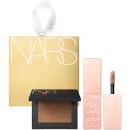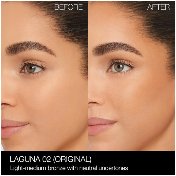 Bronze ambition. Show up sun-kissed anytime, anywhere with a limited-edition duo featuring Mini Laguna Bronzing Powder and Mini Afterglow Liquid Blush in new shade Laguna Soft Bronze. Seamlessly build and blend a sultry glow with silky, finely milled powder in the bestselling bronze shade. Add a rush of golden bronze radiance to the cheeks with liquid blush loaded with hydrating skincare benefits. Features holiday-edition, metallic ornamental packaging. Blend. Buff. Bronze on.