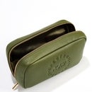 Elevate your beauty essentials with the Spectrum x Katie Jane Hughes zip makeup bag. Crafted from buttery soft vegan leather in a sophisticated olive hue, this chic bag blends luxury with cruelty-free style. Featuring two elegant gold zips for secure storage and a debossed logo for subtle sophistication, it’s the perfect accessory to complement your beauty routine and wardrobe.