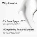 The formula utilises a 1% Hydrating Peptide Solution and active peptide Royal Epigen P5™ to help improve the appearance of skin elasticity. Delivering an intense boost of hydration, the multi-purpose moisturiser smooths the look of fine lines and transforms the appearance of tired skin with a luminous glow.